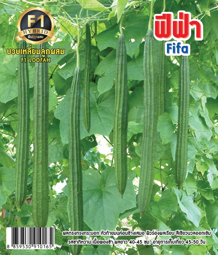 บวบเหลี่ยมลูกผสม ลำต้นแข็งแรง แตกแขนงดี ผลตรง สีเขียวสด คอผลใหญ่ เนื้ออ่อนนุ่ม รสชาติดี ติดผลดก สม่ำเสมอ ผลยาว 40-45 ซม.