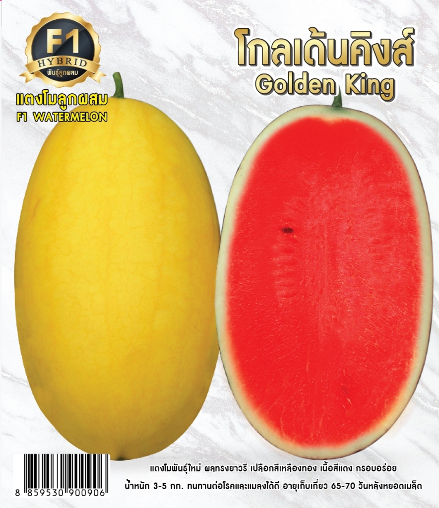 ผลทรงยาวรี เปลือกสีเหลืองทอง เนื้อสีแดง กรอบอร่อย น้ำหนัก 3-5 กก. ความหวาน 12-14 บริกซ์ ทนทานต่ิโรคและแมลงได้ดี