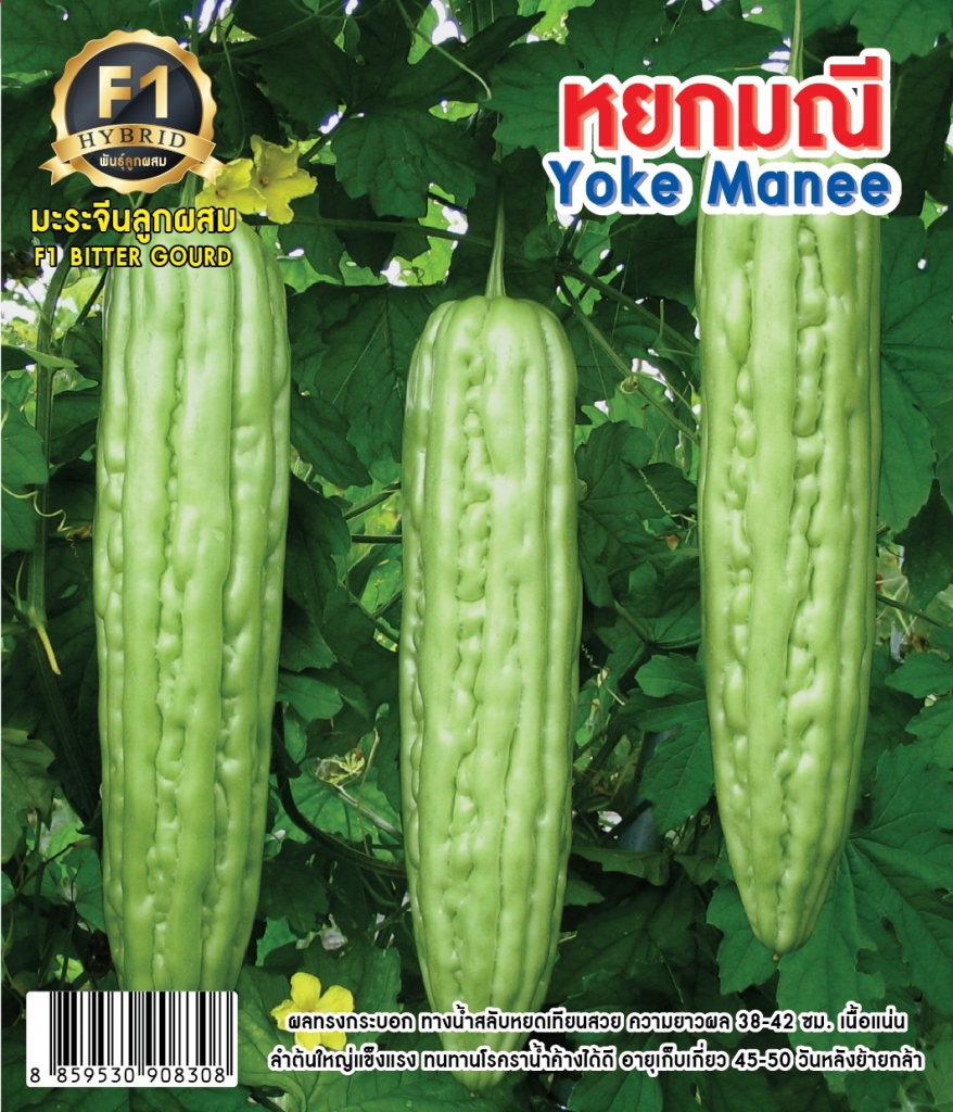 ผลสีเขียวนวล ทรงกระบอก ทางน้ำสลับหยดเทียนสวย ความยาวผล 38-42 ซม. ติดผลดก เนื้อแน่น น้ำหนักดี ลำต้นใหญ่แข็งแรง ทนทานโรคราน้ำค้างได้ดี ปลูกได้ตลอดปี