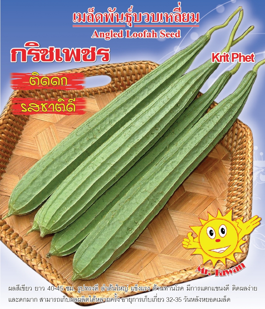 - เริ่มเก็บเกี่ยวผลผลิตประมาณ 45-50 วันหลังจากหยอดเมล็ด ควรเลือกเก็บเกี่ยวผลขณะที่ยังอ่อนอยู่ เนื้อผลอ่อนนุ่มได้ขนาดพอเหมาะ ซึ่งผลจะมีขนาดยาวประมาณ 60-70 ซม. ควรเก็บเกี่ยวก่อนที่ผลเริ่มแข็งและพองออก ไม่ควรทิ้งให้ผลแก่คาติดต้น เพราจะทำให้ผลผลิตลดลง
