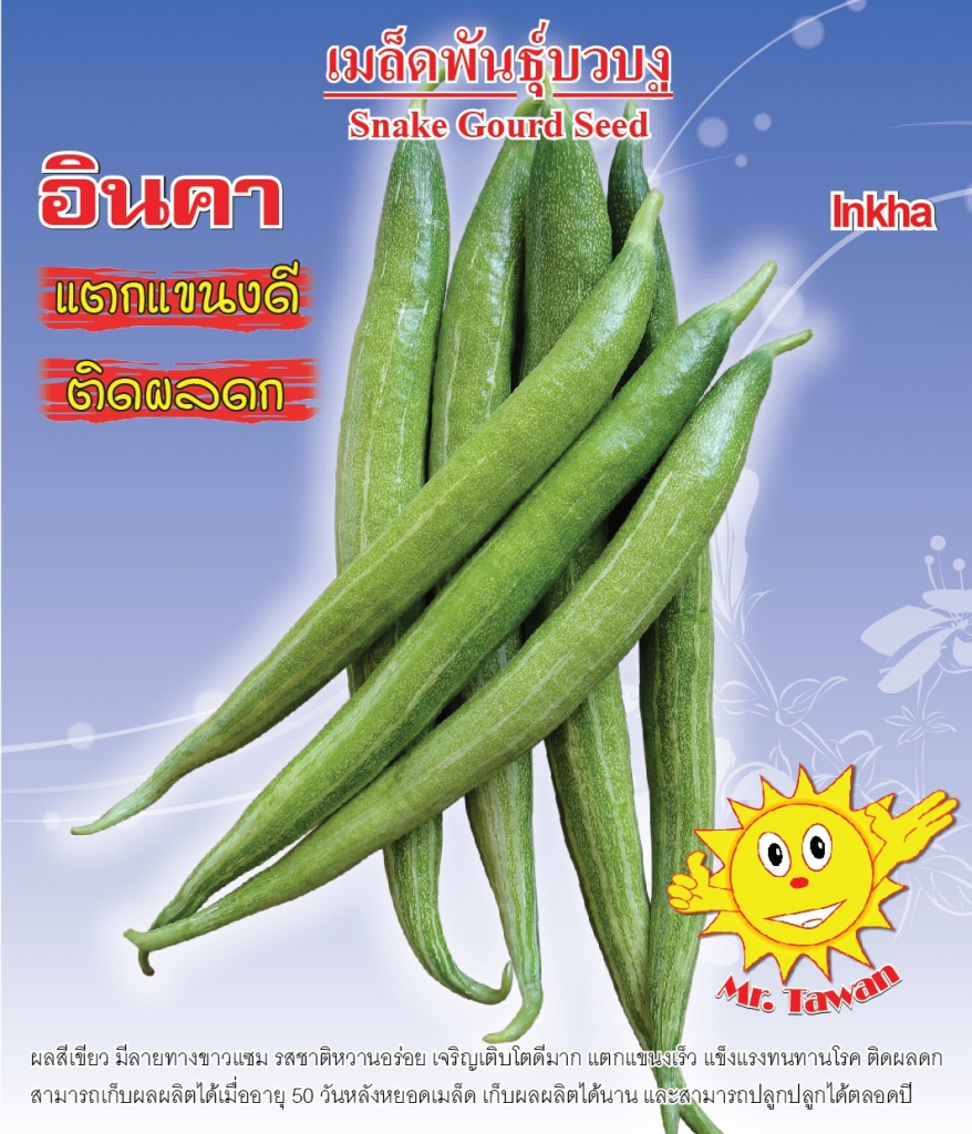 - เริ่มเก็บเกี่ยวผลผลิตประมาณ 45-50 วันหลังจากหยอดเมล็ด ควรเลือกเก็บเกี่ยวผลขณะที่ยังอ่อนอยู่ เนื้อผลอ่อนนุ่มได้ขนาดพอเหมาะ ซึ่งผลจะมีขนาดยาวประมาณ 60-70 ซม. ควรเก็บเกี่ยวก่อนที่ผลเริ่มแข็งและพองออก ไม่ควรทิ้งให้ผลแก่คาติดต้น เพราจะทำให้ผลผลิตลดลง