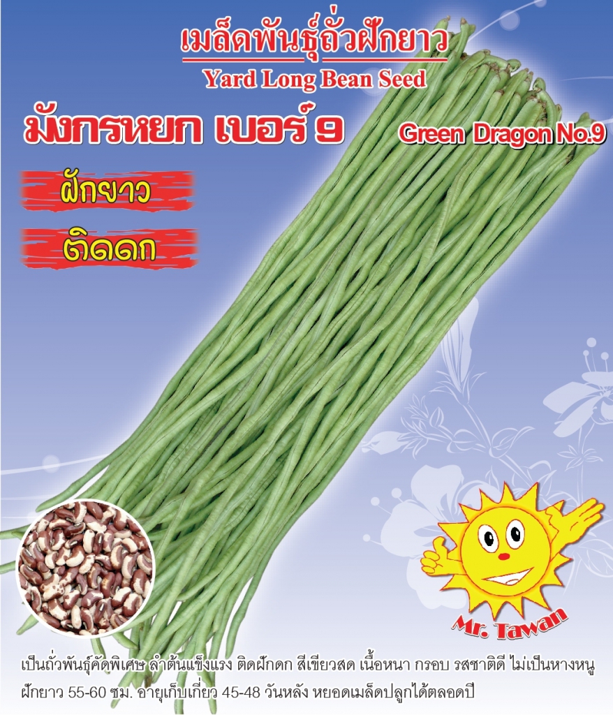 - ถั่วฝักยาวจะเริ่มเก็บผลผลิตอายุ 45 วัน หรือหลังดอกบาน 4-6 วัน ให้ทยอยเก็บเป็นระยะ ทุกๆ 1-2วัน