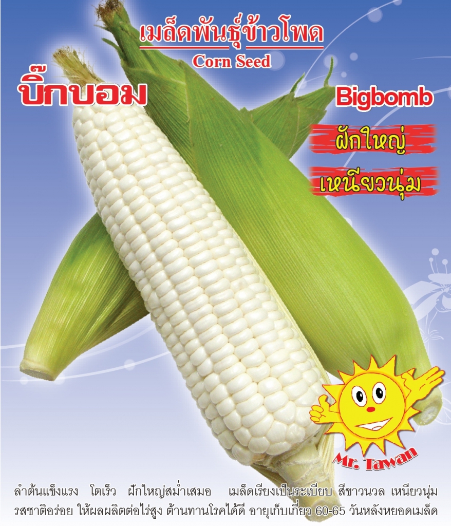 ข้าวโพดข้าวเหนียวคัดพิเศษ ฝักใหญ่ทรงกระบอกสวย เมล็ดสีขาวนวล แกนฝักเล็ก เหนียวนุ่ม รสชาติดี ให้ผลผลิตสูง ลำต้นตรงแข็งแรง ทนทุกสภาพแวดล้อม ต้านทานโรคและแมลงได้ดี
