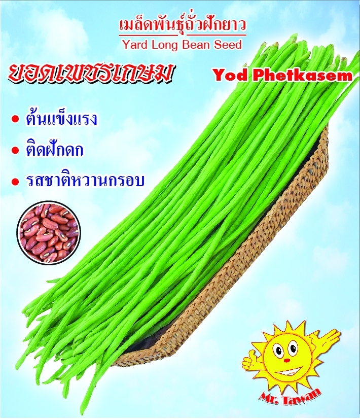 ถั่วเนื้อเมล็ดแดง ปลายฝักสีม่วง ความยาวฝัก 45-50 ซม.