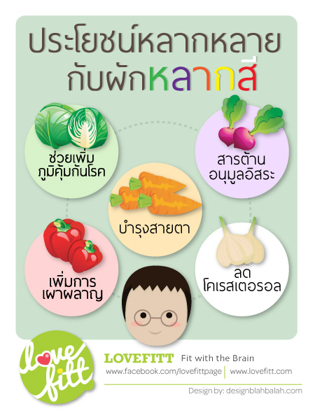 สารพฤษเคมีที่อยู่ในผักแสดงออกเป็นสารสีต่าง ๆ กันดังนี้