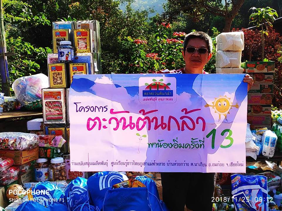 โครงการตะวันต้นกล้าพาน้องอิ่มครั้งที่ 13 บริษัทแอ๊ดว้านซ์ซีดส์จำกัดร่วมกับชมรมรุ้งกินน้ำปีที่ 9 ได้สนับสนุนเมล็ดพันธุ์และเครื่องอุปโภค-บริโภค ต่างๆนำไปมอบให้แก่ ศูนย์การเรียนรู้ชุมชนชาวไทยภูเขา “แม่ฟ้าหลวง” ณ บ้านห้วยกว้าง หมู่ 7 ต.นาเกียน อ.อมก๋อย จ.เชียงใหม่ ในวันที่ 25 พฤศจิกายน 2561 ที่ผ่านมา