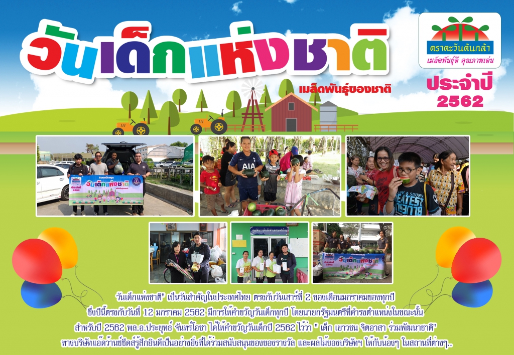 " เด็ก เยาวชน จิตอาสา ร่วมพัฒนาชาติ" ทางบริษัทแอ๊ดว้านซ์ซีดส์รู้สึกยินดีเป็นอย่างยิ่งที่ได้ร่วมสนับสนุนของของรางวัล และผลไม้ของบริษัทฯ ให้กับน้องๆ ในสถานที่ต่างๆ..
