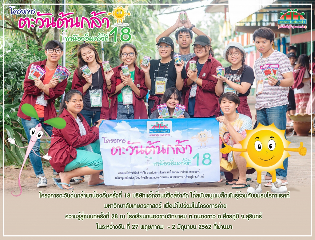 โครงการตะวันต้นกล้าพาน้องอิ่มครั้งที่ 18 บริษัทแอ๊ดว้านซ์ซีดส์จำกัด ได้สนับสนุนเมล็ดพันธุ์ร่วมกับชมรมโรตาแรคท์ มหาวิทยาลัยเกษตรศาสตร์ เพื่อนำไปร่วมในโครงการค่าย