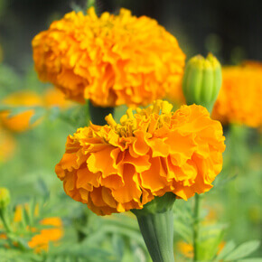 Tall and vigorous plant habit if hybrid mariglod produce 8-10 cm diameter with orange color flower, plant height 70-100 cm, first flowering 58-62 DAS